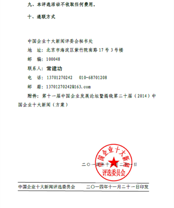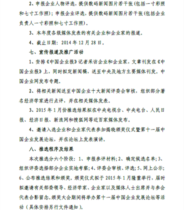 关于中国企业十大新闻评选的通知