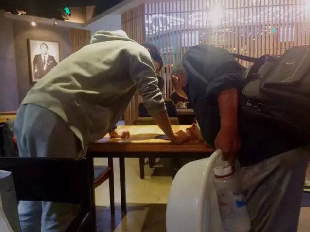 早上,他刚从一个举办会议的四星级酒店回来,他假装参会人员混进酒店,在那里住了两晚,末了,打包了一袋子剩菜回来,打算分给咖啡店拮据的创业者们吃。