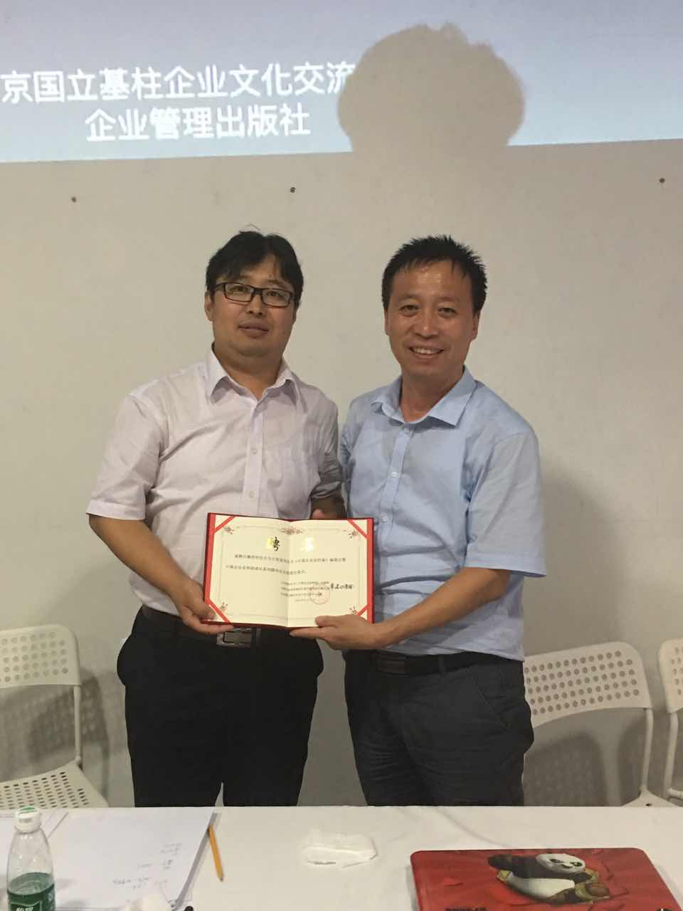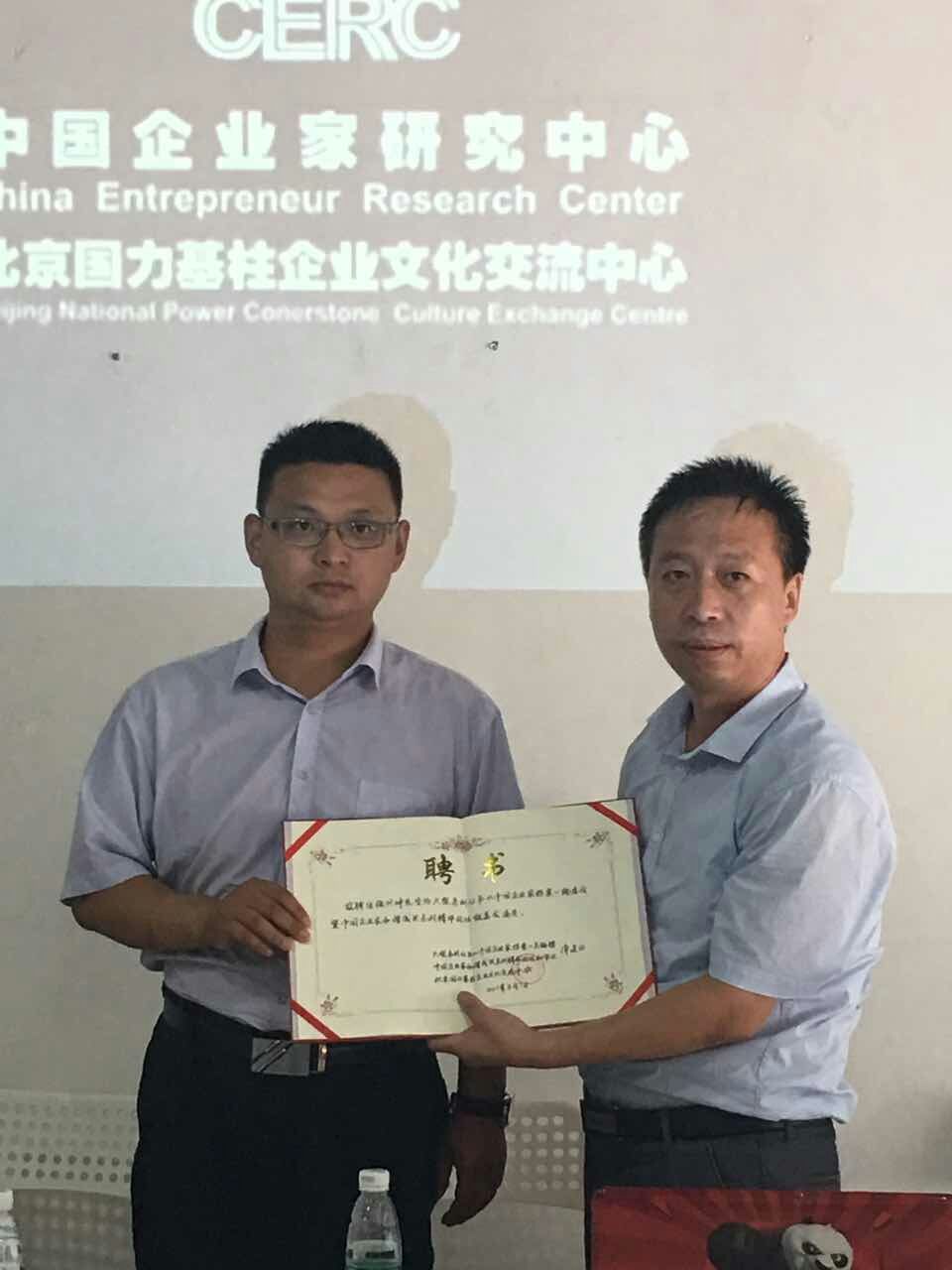 常建功总编辑给段光平颁发聘书