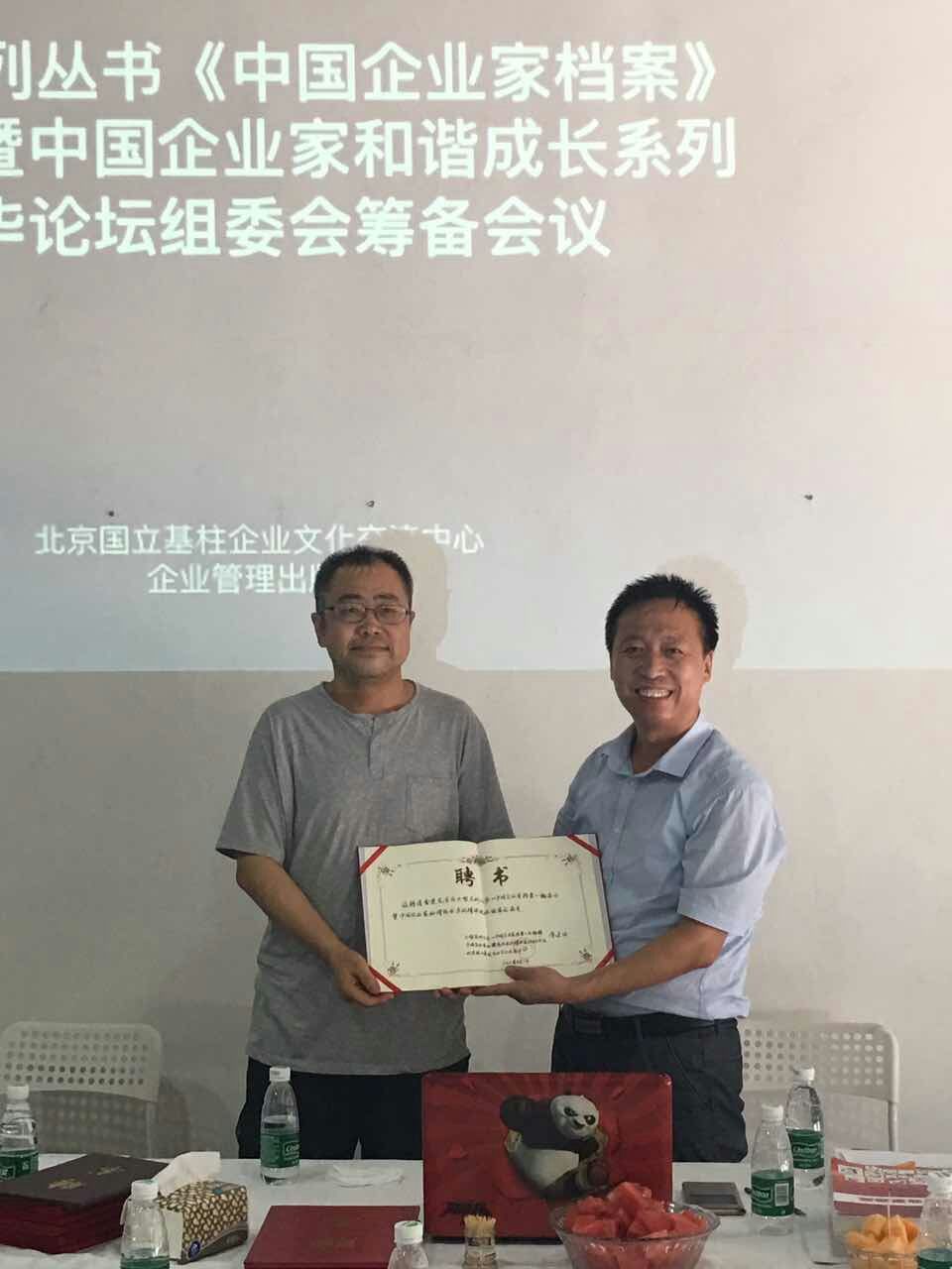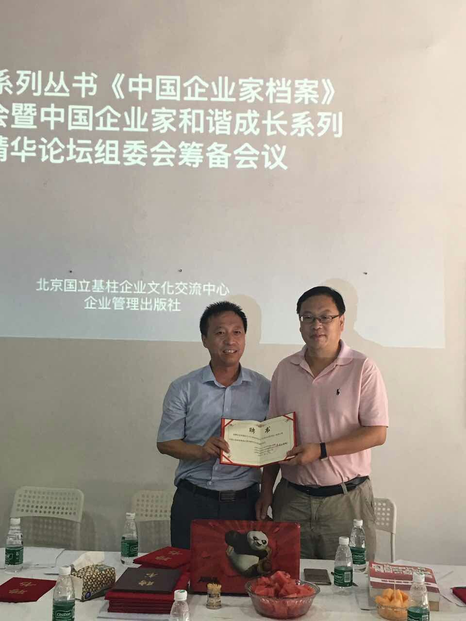 大型系列丛书《中国企业家档案》(下简称:《档案》)编委会和中国企业家和谐成长系列精华论坛组委会(下简称:组(编)委会),8月7日在北京成立。《中国企业家档案》总编辑、中国企业家和谐成长系列精华论坛秘书长、企业家研究中心网总编辑、北京国力基柱企业文化交流中心主任常建功(晋珀)与中国国际展览中心总裁办副主任孟育建、人民日报社记者葛亮亮、中国企业报副总编辑雷景、中国企业报主编江金骐、北京清墨九州文化传播有限公司创始人许先锋、现代消费导报总编室副主任段光平、《中国报刊订阅指南》总编辑魏明明、北京草木神州信息科技有限公司创始人武剑波、北京智慧引领教育科技有限公司总经理李民刚、北京广锐通讯科技有限公司总经理张兴坤、企力智库执行理事长杨宗岳、北京德滋文化传播有限公司董事长白洪以及国家发改委、企业管理出版社等相关人士共同见证了这一时刻。