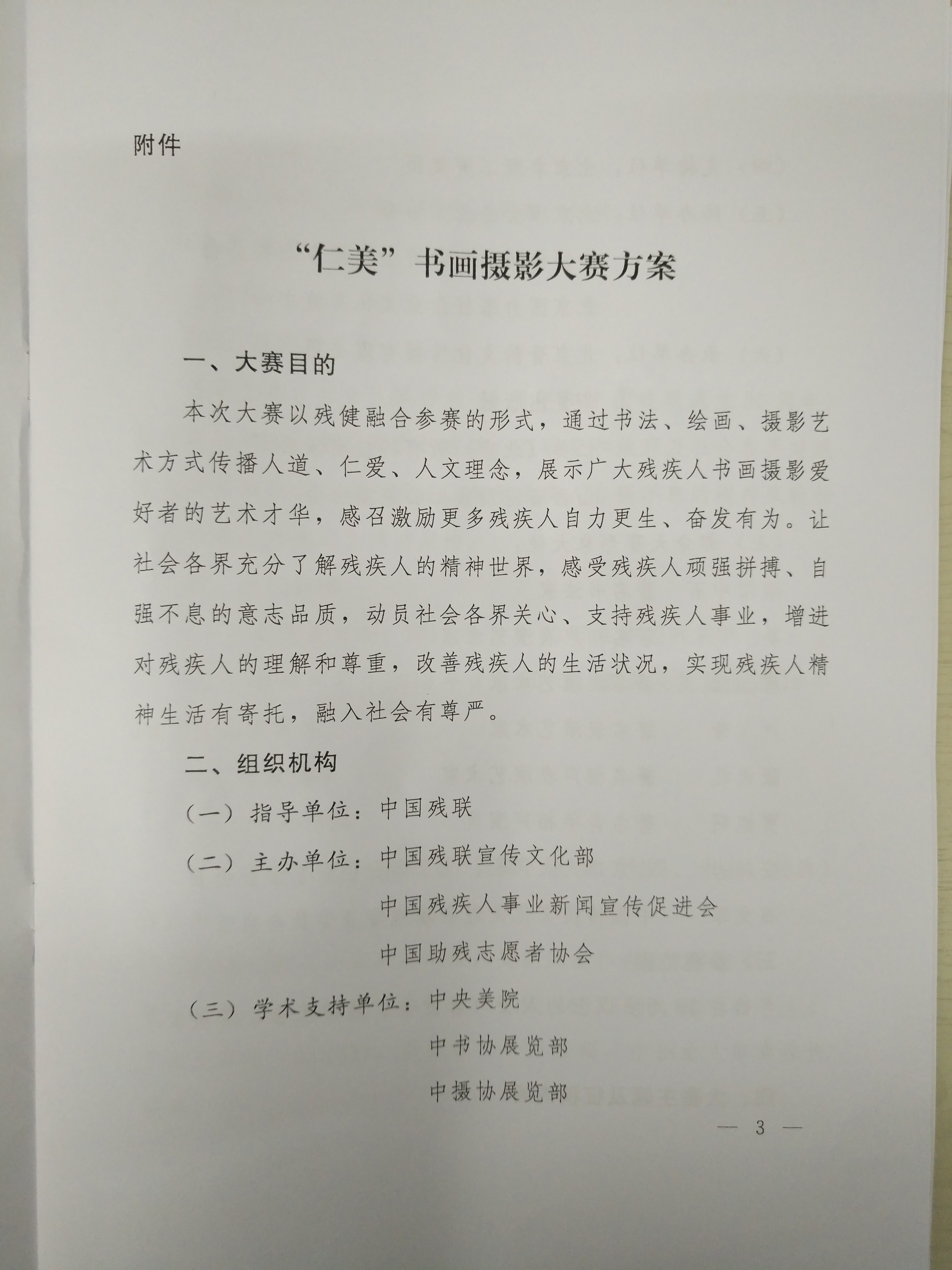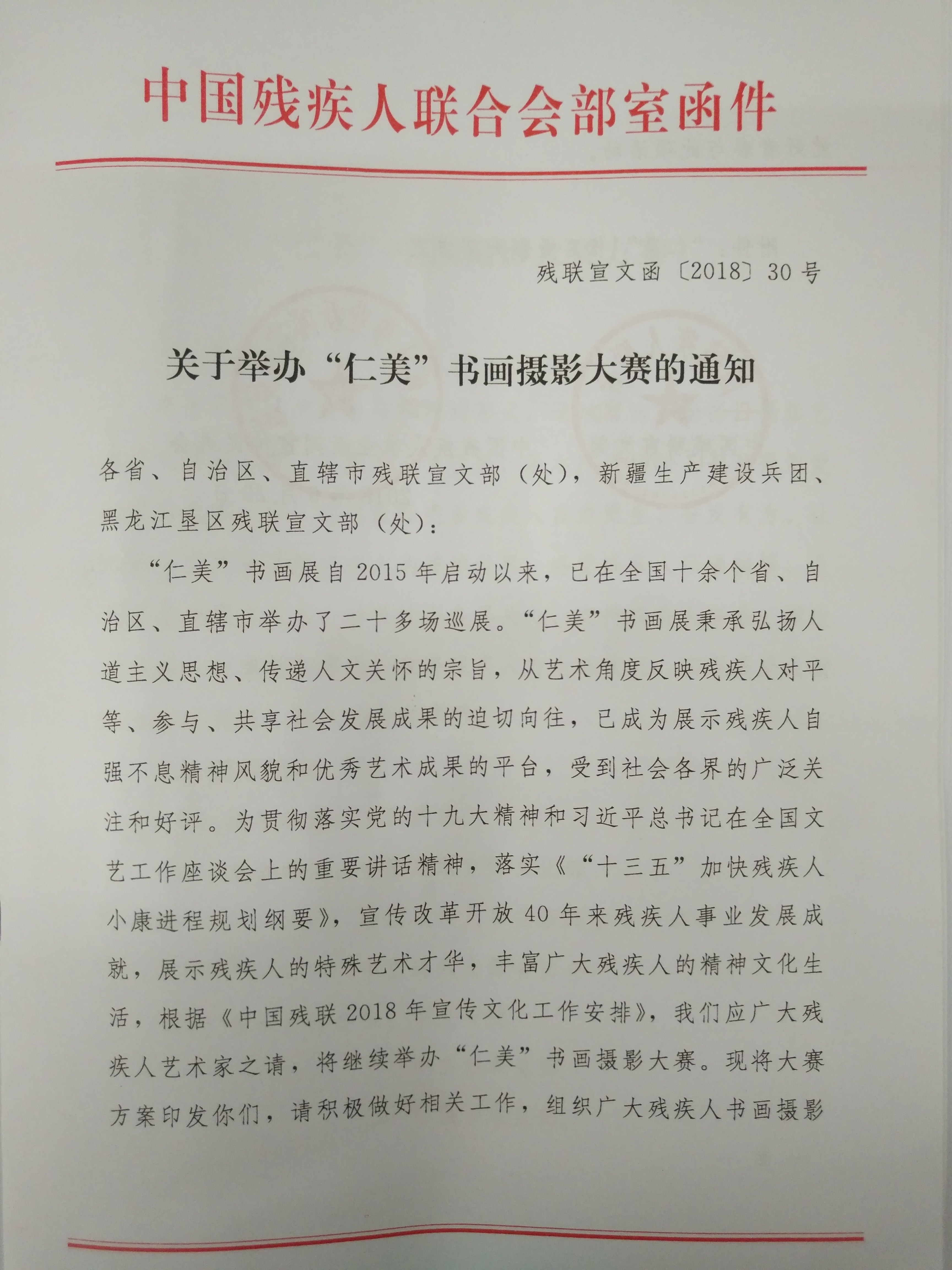中国残疾人联合会关于举办“仁美”摄影书画大