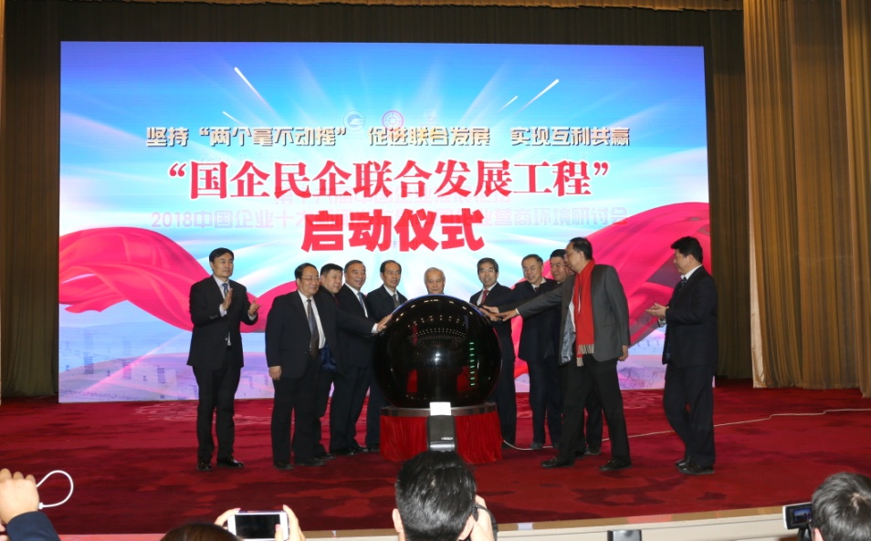 此次论坛上,为了贯彻落实习近平总书记民营企业座谈会重要讲话精神,以“坚持两个毫不动摇”为宗旨,以“促进联合发展,实现互利共赢”为目标,还举办了国企民企联合发展工程启动仪式。十二届全国政协副主席、全国工商联原主席王钦敏以及国务院发展研究中心党组书记、副主任马建堂,国有重点大型企业监事会原主席季晓楠,中国企联常务副会长兼理事长朱宏任,中国建材集团公司党委书记、董事长宋志平,中国煤炭地质总局党委书记、局长赵平,中国基本建设优化研究会副会长兼秘书长孙晓洲,中国亚太合作中心副主任侯延臻,沧州市人民政府副市长刘强,中融人寿董事长余庆飞,《中国企业报》集团社长吴昀国等参加了启动仪式。据悉,该工程第一站将以河北省沧州市为试点单位,探索和开展相关工作。经过试点和总结经验后,形成一套行之有效的模式后,将逐步推向全国。