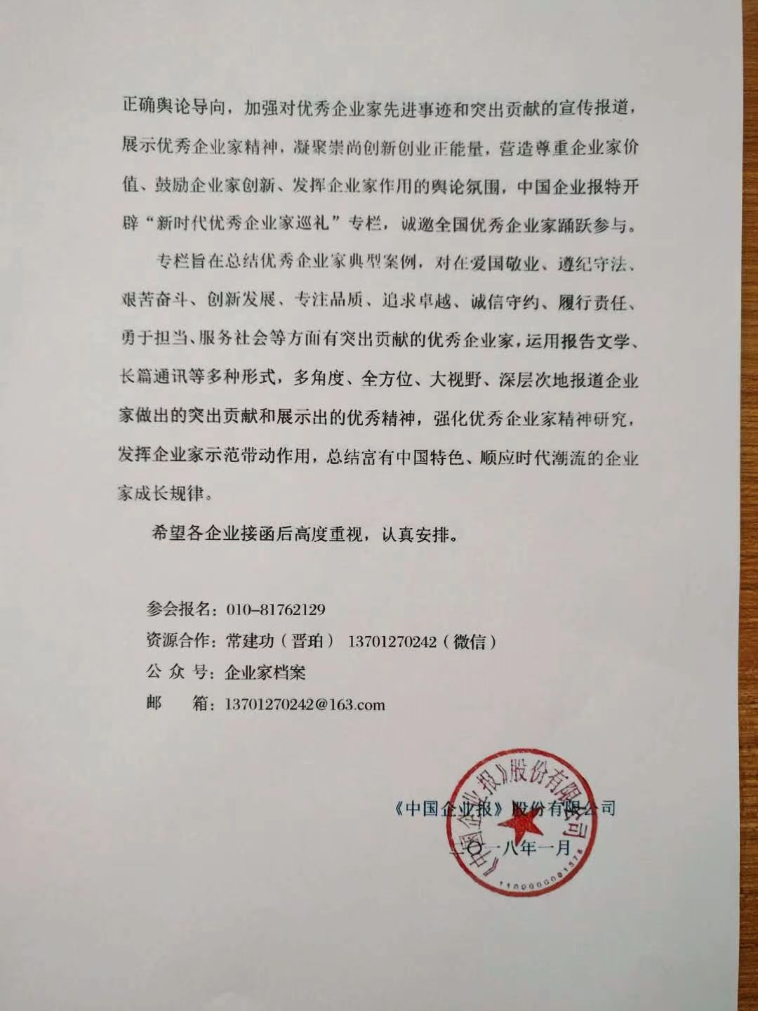四、北京国力基柱企业文化交流中心及大型书系《中国企业家档案》(下称:档案)品牌创始人、著名财经作家常建功(晋珀)