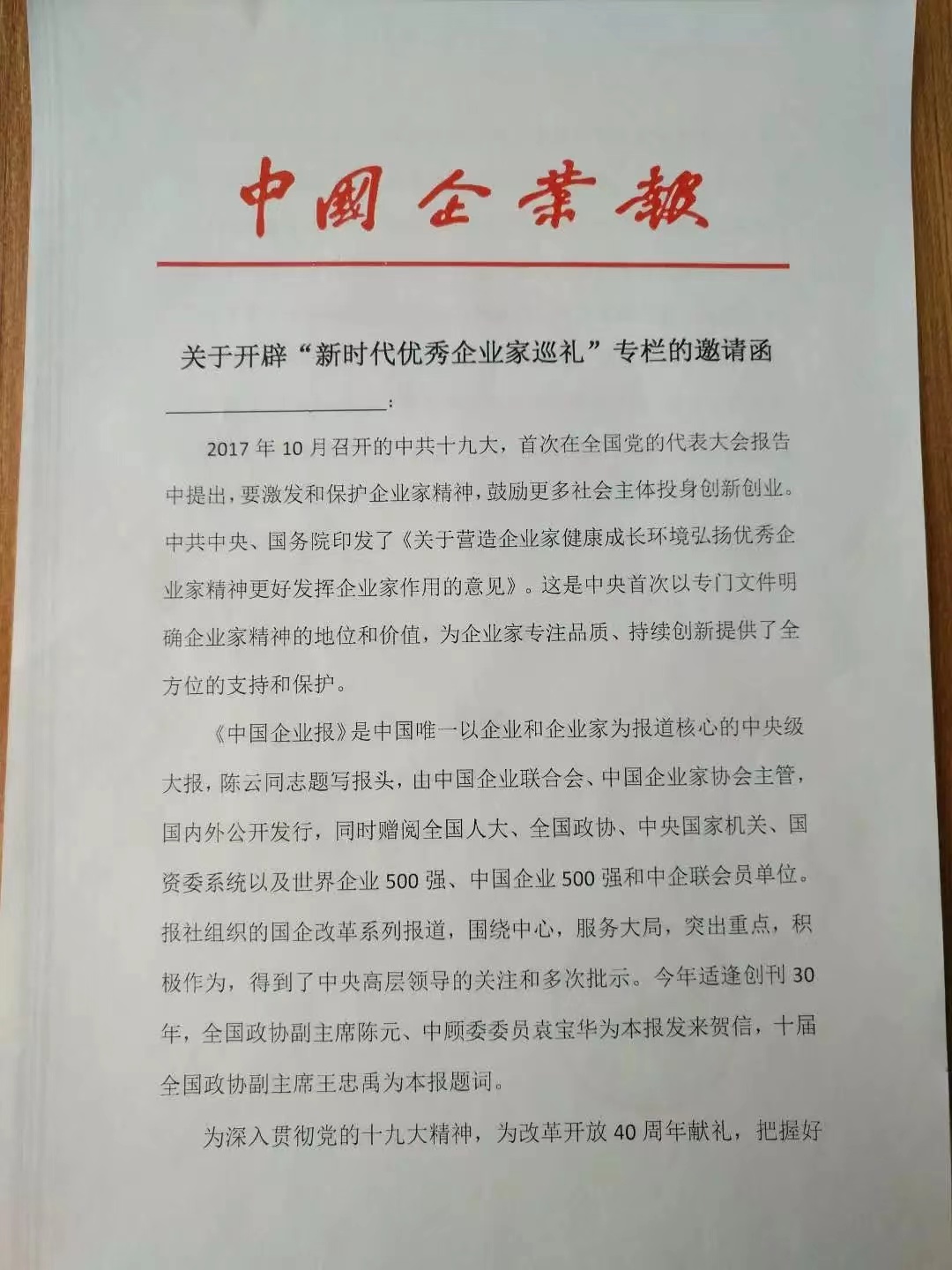 一、《中国企业报》集团“新时代优秀企业家巡礼”专栏